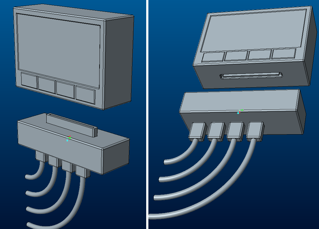 Это когда все провода приходят к одному блоку, а основной блок (собственно регистратор) соединяется с этой докстанцией через группу контактов. Просто лично для меня такая компоновка была бы вообще идеальна, так как к регистратору обращаюсь часто и в КS2 я вижу, что быстро карточку достать из него будет непросто. Или просто в сильный мороз или в жару, если машина на полящем солнце, забрать регистратор из салона тоже будет непросто.