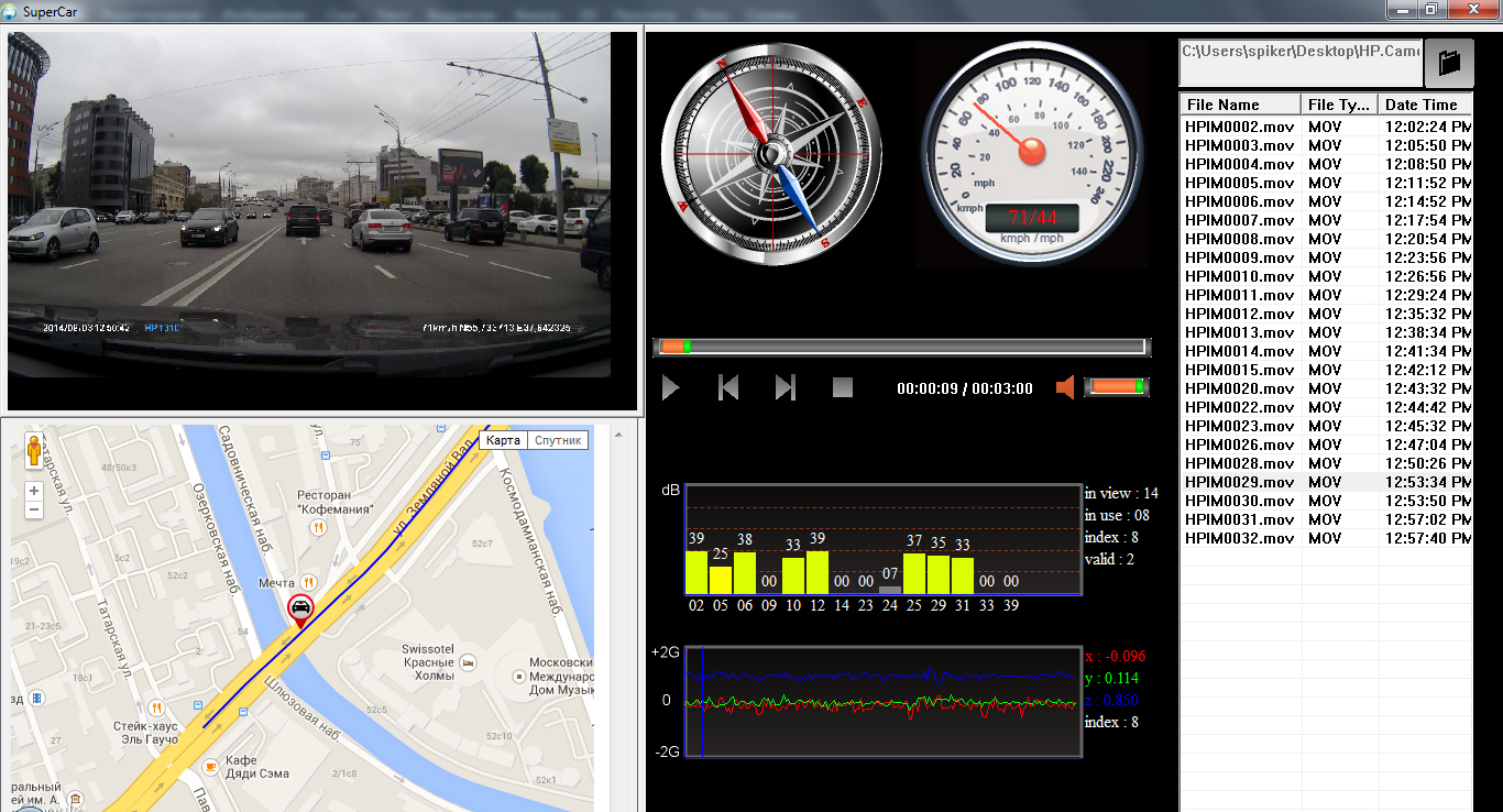Компания HP (Hewlett-Packard) вышла на рынок портативных видеокамер четыре года назад и с тех пор выпустила несколько моделей автомобильных видеорегистраторов и переносных видеокамер. Отметим, что продукты HP в своем большинстве отличаются качеством сборки, надежностью и весьма неплохой технической поддержкой. Итак, к нам в руки попала одна из новых моделей автомобильных видеорегистраторов HP — Car Camcorder f310. Эта модель имеет встроенный GPS-модуль, поддерживает технологию WDR и обладает цветным ЖК-дисплеем с диагональю 2,4 дюйма. Встроенная камера имеет широкий угол обзора 130° по горизонтали и поддерживает запись видео с разрешением 1920×1080 (Full HD) со скоростью 30 кадров/с. Нельзя не отметить наличие датчика движения, датчика удара, встроенного аккумулятора и возможности вывода изображения на внешний экран. Видеорегистратор выгодно отличается от других подобных устройств тем, что обладает встроенной функцией предупреждения о радарах. То есть в HP Car Camcorder f310 интегрирована база полицейских радаров, которая включает множество стационарных радаров России и Беларуси. При этом сам пользователь может оперативно пополнять эту базу в процессе поездки, добавляя необходимые точки одним нажатием. Комплект поставки Видеорегистратор HP Car Camcorder f310 упакован в небольшую картонную коробку из тонкого картона. Коробка оформлена в неброском дизайне с преобладанием черного и синего цвета. На верхней крышке упаковки присутствуют изображение самого видеорегистратора, логотип компании производителя и перечислены основные особенности этой модели. Остальные грани коробки содержат различную техническую информацию, включая рисунки комплекта поставки, технические характеристики модели, технологии и цветовое оформление видеорегистратора. Да, в отличие от многих моделей других производителей, HP Car Camcorder f310 может поставляться в корпусе трех цветов: черном, синем и белом. У нас HP Car Camcorder f310 поступил в традиционном для этих устройств черном цветовом оформлении, хотя надо сказать, что эта модель и в белом и в синем цвете выглядит очень симпатично и необычно. Внутри коробки покупатель обнаружит: · видеорегистратор HP Car Camcorder f310; · автомобильный адаптер питания от прикуривателя; · кабель Mini-USB—USB для подключения к компьютеру; · крепление на лобовое стекло; · CD-диск с программным обеспечением; · руководство пользователя и гарантийный талон. В комплектацию этой модели включены практически все необходимые «ингредиенты» для быстрой установки и дальнейшей работы. Увы, к этой модели не прилагается карта памяти microSD, поэтому при покупке HP Car Camcorder f310 необходимо приобрести ее. Отметим, что для корректной работы модели в режиме записи видео Full HD необходима карта памяти microSD стандарта SDHC, объемом до 32 ГБ и со скоростью записи не ниже 6 МБ/с (Class 6). Поскольку данный видеорегистратор поддерживает вывод изображения на внешний экран с помощью интерфейса HDMI, при необходимости к нему можно докупить соответствующий кабель с разъемом Mini C HDMI на одном из концов. Управление Управление этой моделью осуществляется с помощью основных четырех кнопок, расположенных под ЖК-экраном. В правой части лицевой панели над экраном располагается небольшой светодиод активности устройства, который горит разным светом в зависимости от текущего состояния работы. Включение/выключение модели осуществляется 