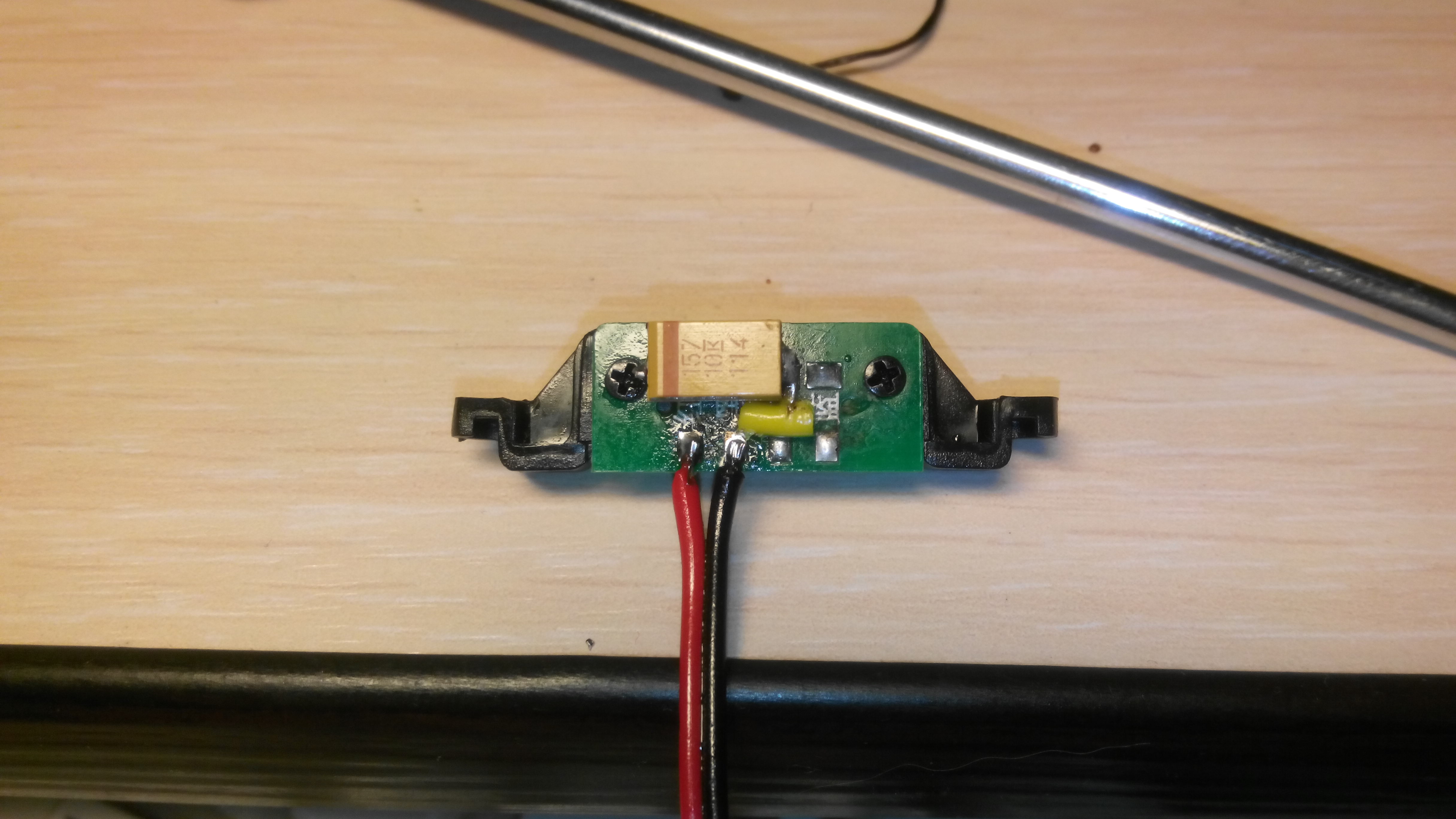 На днях опять руки зачесались всетаки разобраться в этом вопросе. Решил так - если управления приемником GPS регистратором не производится, то влияние на приемник оказывается им (регистратором ) по питанию. Купил пару танталовых конденсаторов 150мкф 10В один из них "аккуратно" ;) подпаял к контактам разъема питания регистратора.