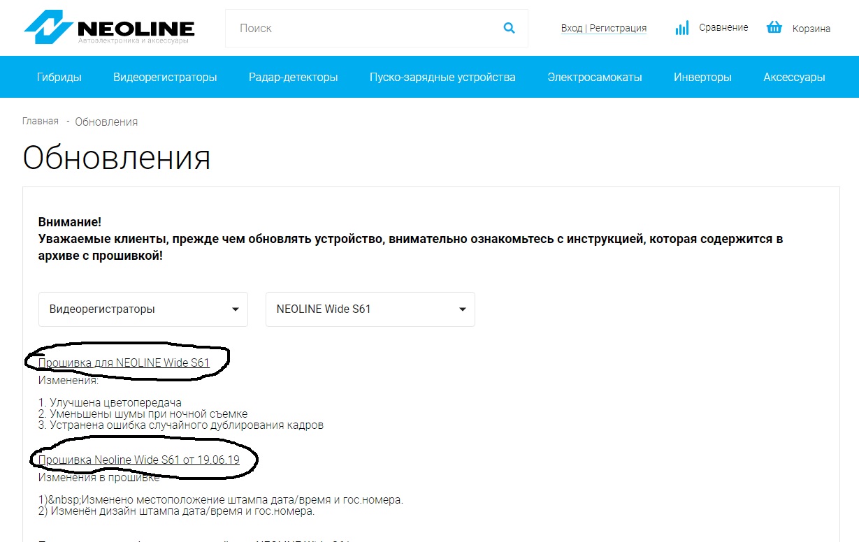 18. Здравствуйте, мое устройство NEOLINE Wide S61. На вашем оф сайте сейчас находятся две одинаковые прошивки от 19.03.19. При покупке прошивка на устройстве была от 19.06.19. На скрине видно, что более поздняя прошивка вверху без номера. Предыдущая обозначена 19.06.19. Я естественно скачал и установил более позднюю,без номера, но она оказалась от 19.03.19. Вторая прошивка на вашем сайте так же от 19.03.19, хотя указана как 19.06.19.