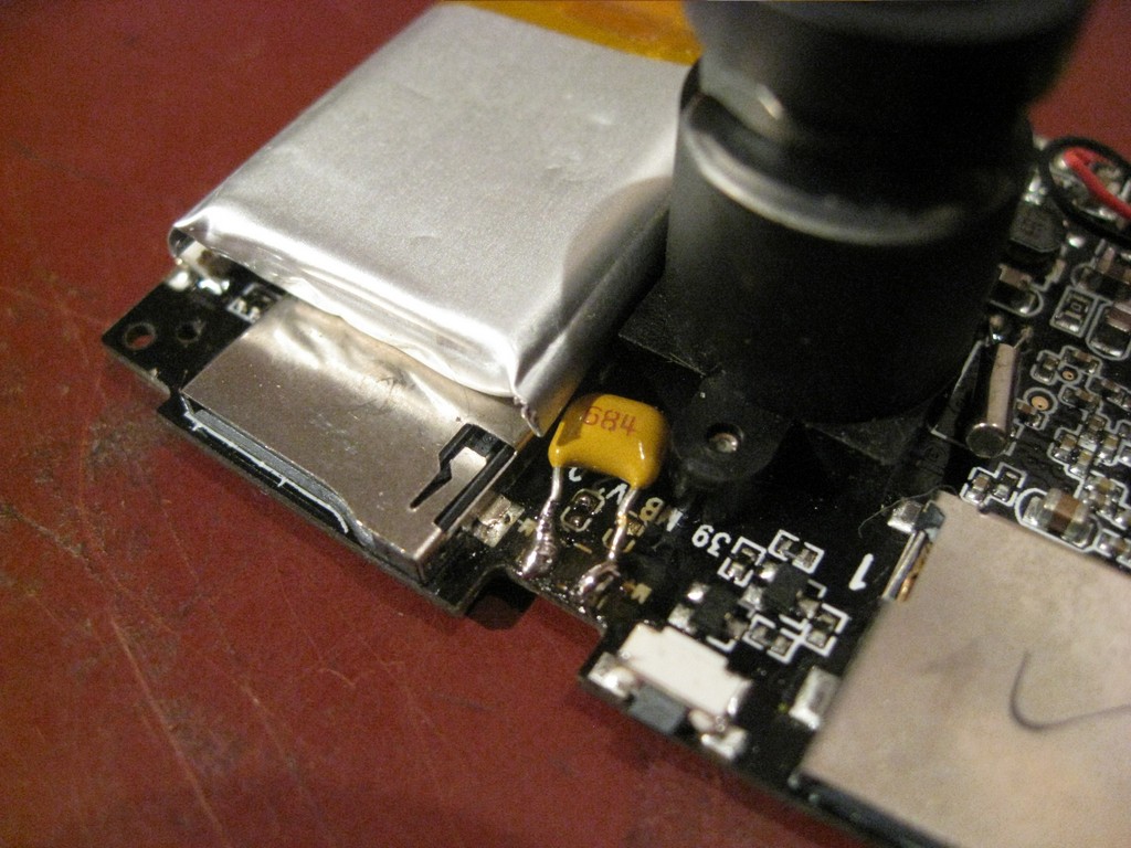 Убрал SMD конденсаторы. Поставил конденсатор 0,68 мкФ параллельно микрофону. Размеры конденсатора - высота 4 мм, ширина 5 мм. Звук, на мой слух, удовлетворительный. Если завтра получится, то проверю на дороге.