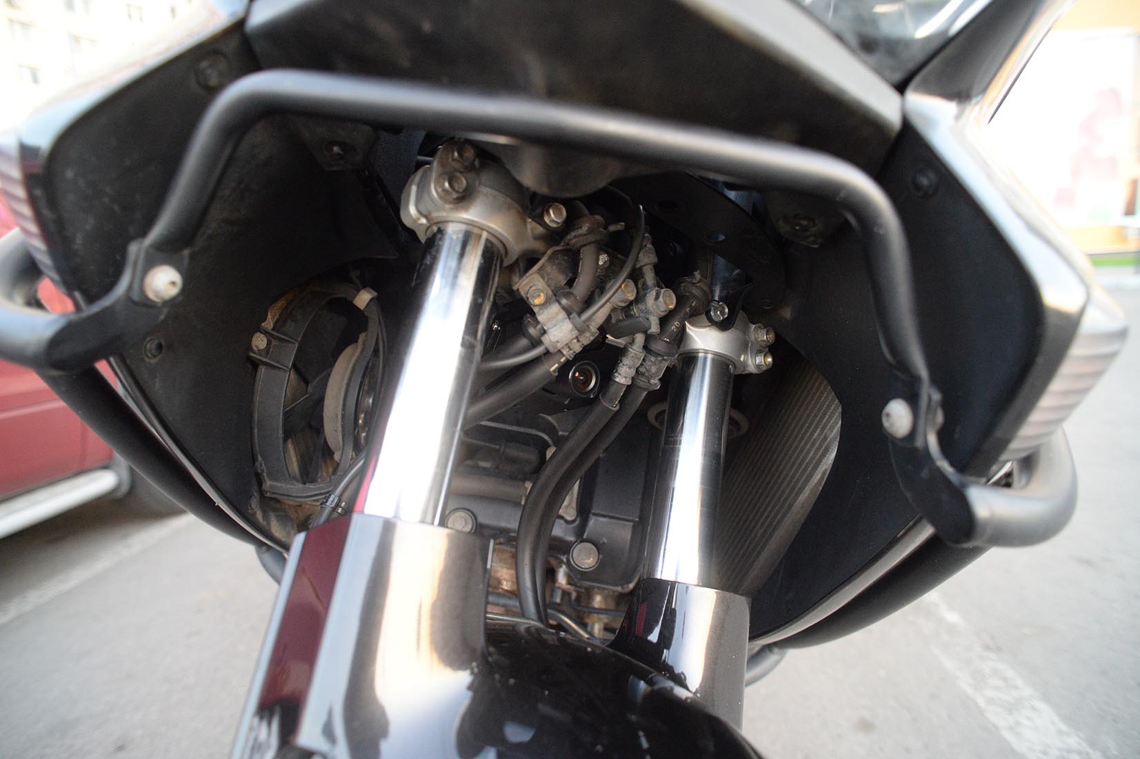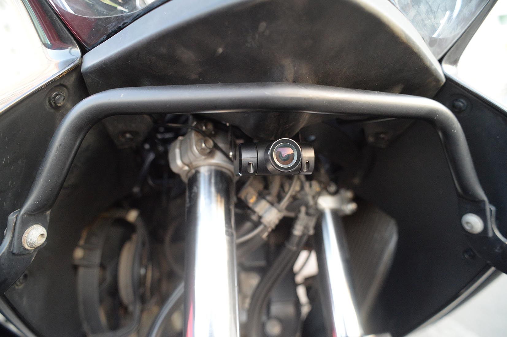 Рад представить вашему вниманию обзор первого в моей практике видеорегистратора для мотоцикла. Как известно, в нашей стране в этом сегменте до недавнего времени наблюдался определенный дефицит, особенно, в отношении моделей поддерживающих режим съемки FullHD. Либо такие решения стоили дорого. К примеру, вариант от BikeAmigo в комплекте из одной камеры обходится в 290 фунтов-стерлингов без учета доставки. В итоге для решения проблемы мотоциклисты чаще всего прибегали к помощи различных экшн камер, что вызывало сомнения в удобстве их эксплуатации. Прежде всего, вопросов автовключения, емкости аккумулятора и неудобстве использования в принципе. Как правило, наиболее удобным вариантом было крепление на шлем, но и оно у меня, честно говоря, вызывает сомнения. Теперь на рынке появился новый и факически единственный представитель подвида мотовидеорегистраторов китайский FOXeye CG1. В данном случае происхождение данного прибора пусть у вас не вызывает законных предубеждений: качество сборки и дизайн, на мой взгляд, на довольно высоком уровне и у меня не возникло ощущения дешевизны. Устройство выполнено по модульному принципу: основной блок записи с объективом, блок питания и небольшой блок индикации и управления. Все три блока соединены проводами между собой. Разъединить из нельзя. Такая конструкция подразумевает стационарную установку с размещением блока управления и ндикации под рукой на приборной панели или в любом удобном месте. Основной блок с камерой не могу сказать что суперкомпактный, но относительно небольших размеров. Скрыто разместить его можно, но все, конечно, зависит от конкретной техники на которой вы ездиете. Все компоненты регистратора выполнены в матовом черном. Это безусловно плюс. Исключение лишь составляет глянцевая обводка боковых ребер. Важно сказать, что у устройства отсутствует экран. Посмотреть записи можно либо через Wi-fi с помощью собственного приложения для Android или iPhone, либо полючить ПК через micro-usb разъем на основном блоке. Кстати говоря, не каждый micro-usb кабель может подойти из-за достаточно узкого входа. У меня подошел только фирменный от BlackBerry. К комплекту регистратора также идет специальная площадка с помощью которй он может крепиться к той или иной поверхности + большой набор скотчей и наклеек разного типа. Тест Foxeye я проводил на мотоцикле Хонда Варадеро 2009-го г.в. Мотоцикл достаточно крупный, однако решение вопроса места установки выглядело не вполне однозначным. В итоге я решил попробовать два варианта: Крепление на пластиковой площадке под головной фарой. Крепление на нижней площадке основания рулевой системы, прямо за двумя перьями и тормозными шлангами. По началу за и против каждого варианта было несколько соображений: Малая площадь и невысокая жесткость площадки в первом варианте и подозрения на нестабильность системы при разгонах и торможениях, а также на скорости. Одновременно с этим, у данного варианта степень заметности, на мой взгляд, была значительно выше, поэтому уже по этому поводу я его ставил под сомнения. Против второго варианта, в первую очередь, была завязка на рулевое управление. За - жесткость и площадь крепления, и степень заметности, естественно. Забегая вперед, скажу, что помимо всех этих опасений и предположений я не учел еще один важный параметр - высоту. Насколько это важно ост